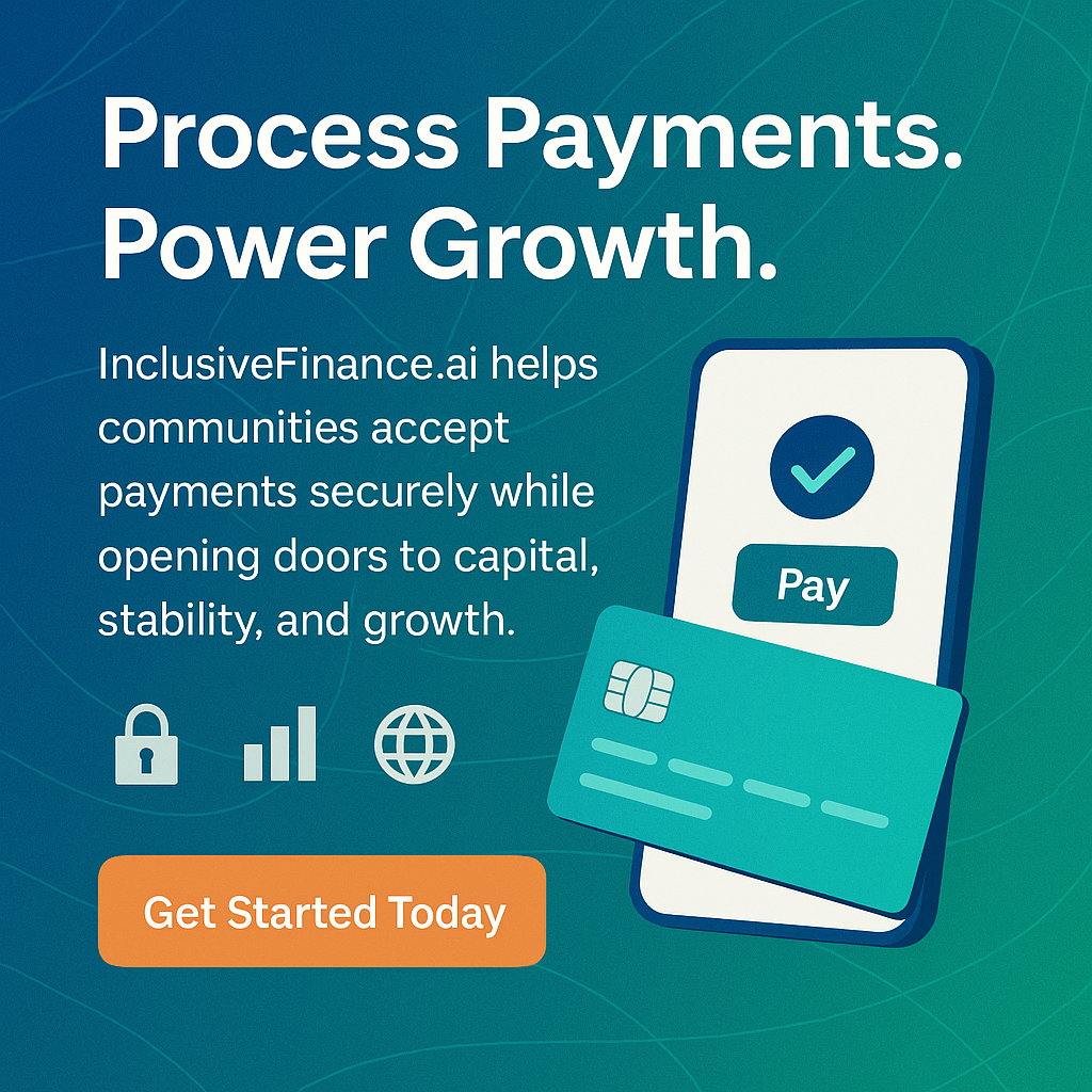 At InclusiveFinance.ai, payment processing is more than just moving money. Every transaction helps small businesses and communities build financial credibility, reduce costs, and access new opportunities. Our technology ensures payments are secure, affordable, and designed to strengthen long-term growth.